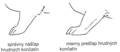 Postoj a nášľap - hrudné končatiny musia byť rovné, ich nášľap má byť tzv. mačací, vzpriamený postoj.