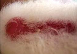 Je to často vyskytujúce sa ochorenie, ktoré môže mať viacero príčin a to napr. z prašnej podstielky. U mňa sa viac krát objavilo, ak som použil čerstvú slamu s kosby(priamo po žatve zo stoha). Tiež pri stresových situáciách napr. prevoz, výstavy atď. Najrýchlejší a najjednoduchší spôsob a ochrana chovu je naočkovať všetky zvieratá Ivomecom. Ten zaberá tak do 3-4 dňoch. Tiež sa s ním odstránia všetky parazity napr. aj drávčici. Vrelo doporučujem!